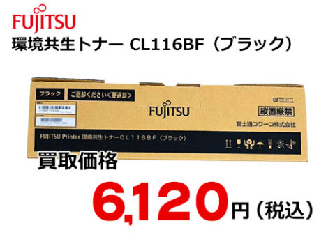 富士通 環境共生トナー CL116BF(ブラック) ただいま高価買取中! ※表示の価格は、2025年11月17日 現在のものです。 ※買取価格は、商品の状態や市場動向によって変わる場合があります。 ※パッケージは変更になっている場合がございます。 最新の買取価格は、下記「無料見積もり依頼」よりお問い合わせ下さい。 富士通(FUJITSU) 純正 トナーカートリッジ(環境共生トナー) CL116BF ブラック(商品番号:0890214) カラー:ブラック 印刷枚数:10000枚(大容量) 対応機種:FUJITSU Printer XL-C8350