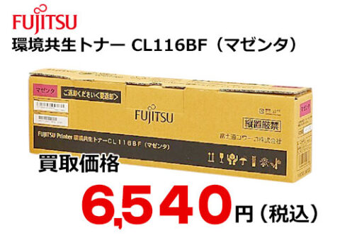 富士通 環境共生トナー CL116BF(マゼンタ) ただいま高価買取中! ※表示の価格は、2025年11月17日 現在のものです。 ※買取価格は、商品の状態や市場動向によって変わる場合があります。 ※パッケージは変更になっている場合がございます。 最新の買取価格は、下記「無料見積もり依頼」よりお問い合わせ下さい。 富士通(FUJITSU) 純正 トナーカートリッジ(環境共生トナー) CL116BF マゼンタ(商品番号:0890234) カラー:マゼンタ 印刷枚数:10000枚(大容量) 対応機種:FUJITSU Printer XL-C8350