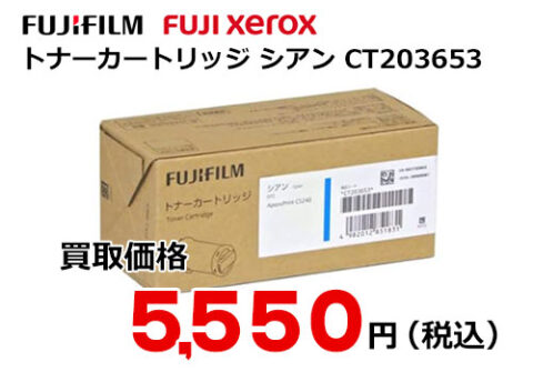 ただいま高価買取中! ※表示の価格は、2025年10月15日 現在のものです。 ※買取価格は、商品の状態や市場動向によって変わる場合があります。 ※パッケージは変更になっている場合がございます。 最新の買取価格は、下記「無料見積もり依頼」よりお問い合わせ下さい。 富士フイルム(旧ゼロックス FUJI XEROX)純正 トナーカートリッジ シアン CT203653 カラー:シアン 印刷枚数:5000枚 対応機種:ApeosPrint C5240