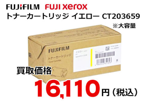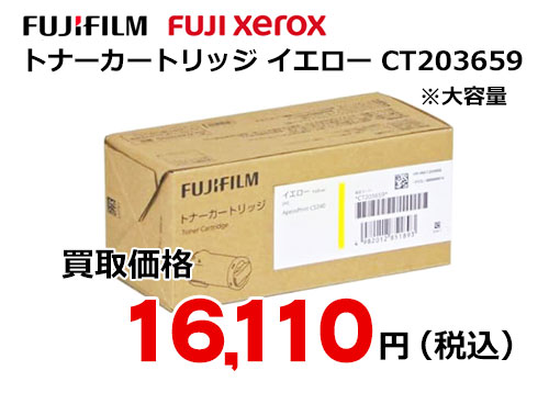 ただいま高価買取中! ※表示の価格は、2025年10月15日 現在のものです。 ※買取価格は、商品の状態や市場動向によって変わる場合があります。 ※パッケージは変更になっている場合がございます。 最新の買取価格は、下記「無料見積もり依頼」よりお問い合わせ下さい。 富士フイルム(旧ゼロックス FUJI XEROX)純正 トナーカートリッジ大容量 イエロー CT203659 カラー:イエロー 印刷枚数:16000枚 対応機種:ApeosPrint C5240
