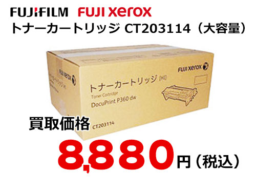 ただいま高価買取中! ※表示の価格は、2025年12月3日 現在のものです。 ※買取価格は、商品の状態や市場動向によって変わる場合があります。 ※パッケージは変更になっている場合がございます。 最新の買取価格は、下記「無料見積もり依頼」よりお問い合わせ下さい。 富士フイルム(旧ゼロックス FUJI XEROX)純正 大容量トナーカートリッジ CT203114 カラー:モノクロ 印刷枚数:8000 枚(大容量タイプ) 対応機種:DocuPrint P360 dw