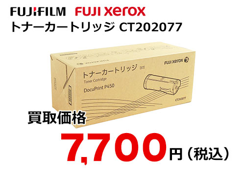 ただいま高価買取中! ※表示の価格は、2025年12月3日 現在のものです。 ※買取価格は、商品の状態や市場動向によって変わる場合があります。 ※パッケージは変更になっている場合がございます。 最新の買取価格は、下記「無料見積もり依頼」よりお問い合わせ下さい。 富士フイルム(旧ゼロックス FUJI XEROX)純正 トナーカートリッジ CT202077 カラー:モノクロ 印刷枚数:5000 枚 対応機種:DocuPrint P450 d/P450 ps/P450 JM